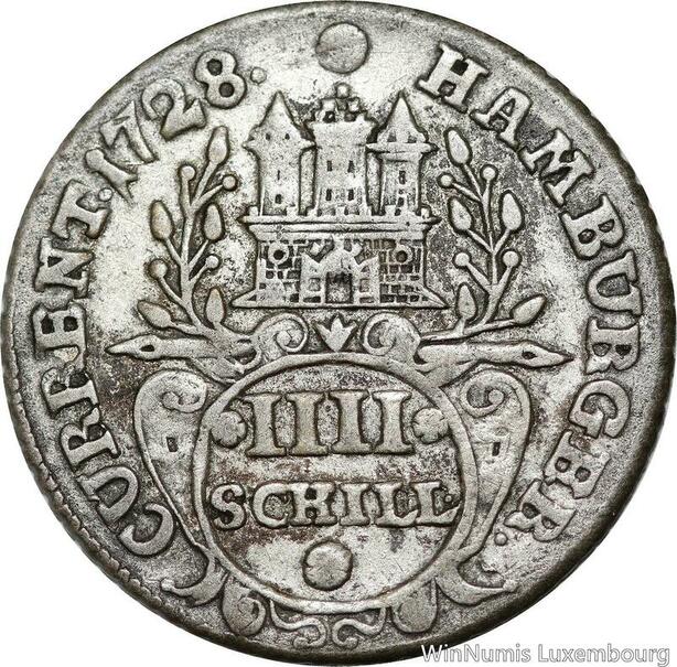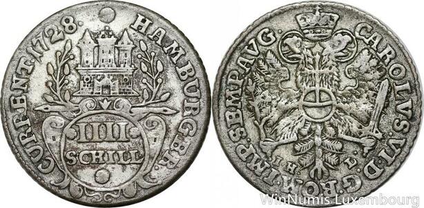 P8070 Germany Hamburg 4 Schilling Karl VI 1728 IHL Silver -> M offer