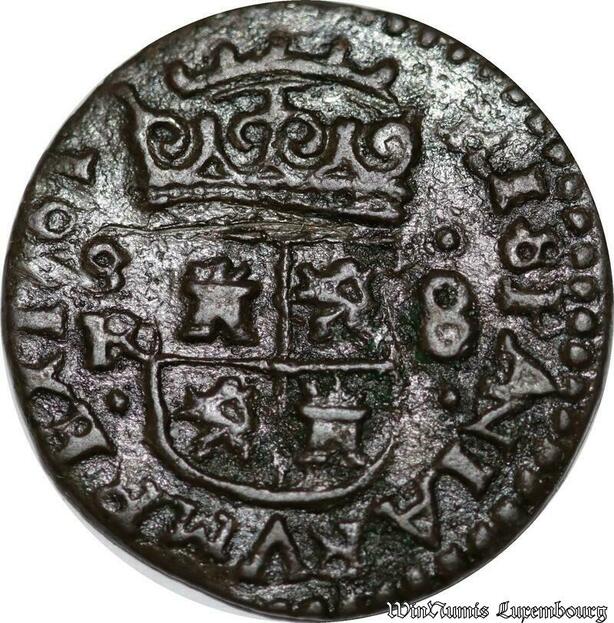 P8080 Spain Castille y Leon 8 Maravedis Philip IV 1661 S Segovia -> Make offer