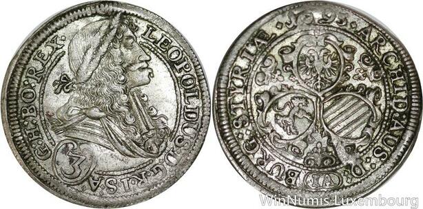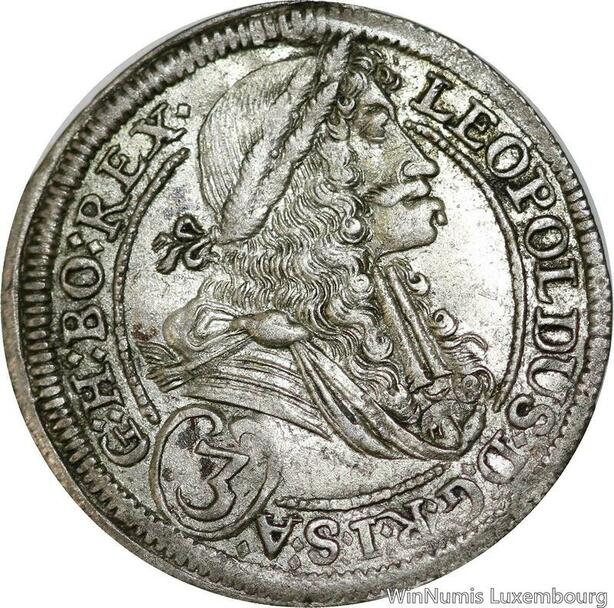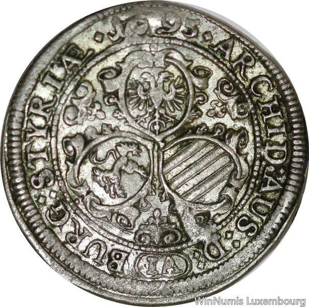 P8098 Rare Austria Styrie 3 Kreuzer Leopold I 1693 Graz IA Silver AU