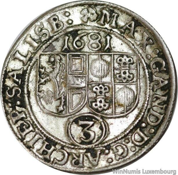 P8112 Austria Salzburg 3 Kreuzer Maximilian Gandolph Groschen 1681 Silver