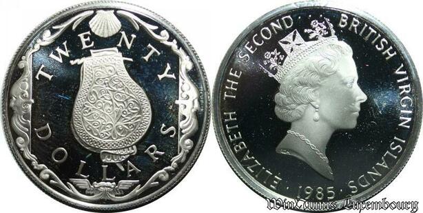 P8124 Virgin Islands 20 Dollars Elizabeth II Perfume bottle 1985 Silver PROOF