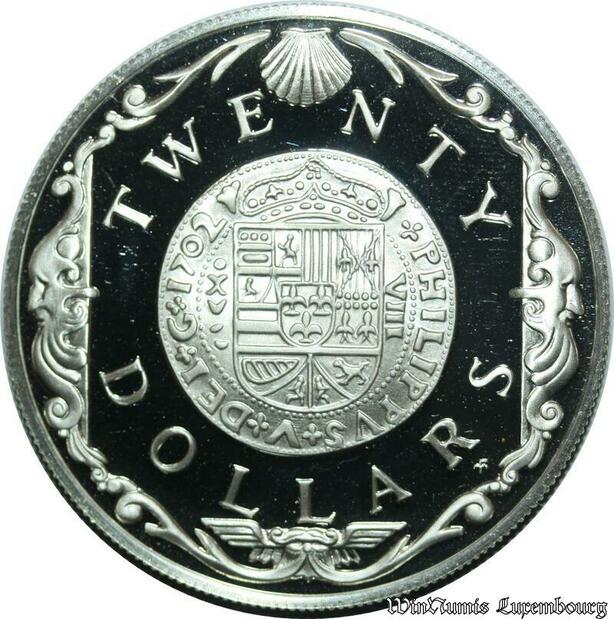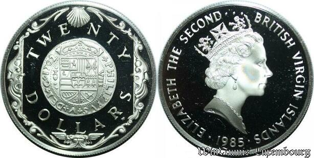 P8127 Virgin Islands 20 Dollars Elizabeth II Gold dubloon 1985 Silver PROOF