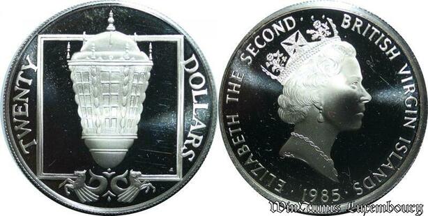 P8128 Virgin Islands 20 Dollars Elizabeth II Ship lantern 1985 Silver PROOF