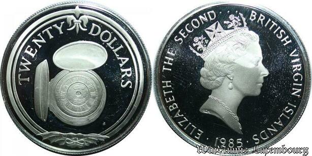 P8129 Virgin Islands 20 Dollars Elizabeth II Pocket watch 1985 Silver PROOF
