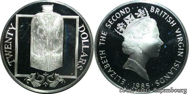 P8133 Virgin Islands 20 Dollars Elizabeth II Porcelain bottle 1985 S PROOF