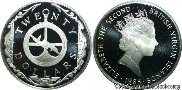 P8134 Virgin Islands 20 Dollars Elizabeth II Astrolabe 1985 Silver PROOF