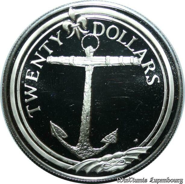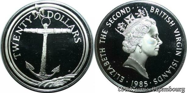 P8136 British Virgin Islands 20 Dollars Elizabeth II Anchor 1985 Silver PROOF