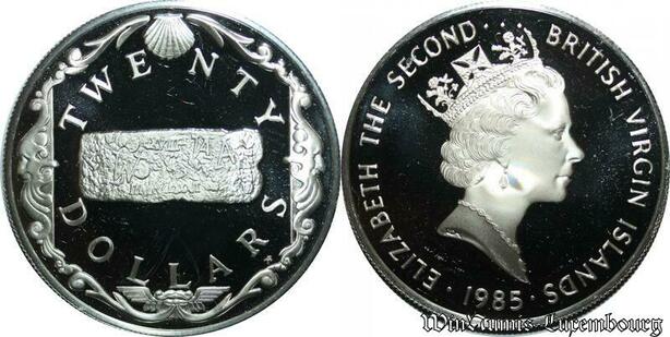 P8139 British Virgin Islands 20 Dollars Elizabeth II Gold bar 1985 Silver PROOF