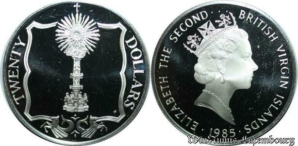P8144 Virgin Islands 20 Dollars Elizabeth II Gold Monstrance 1985 S PROOF