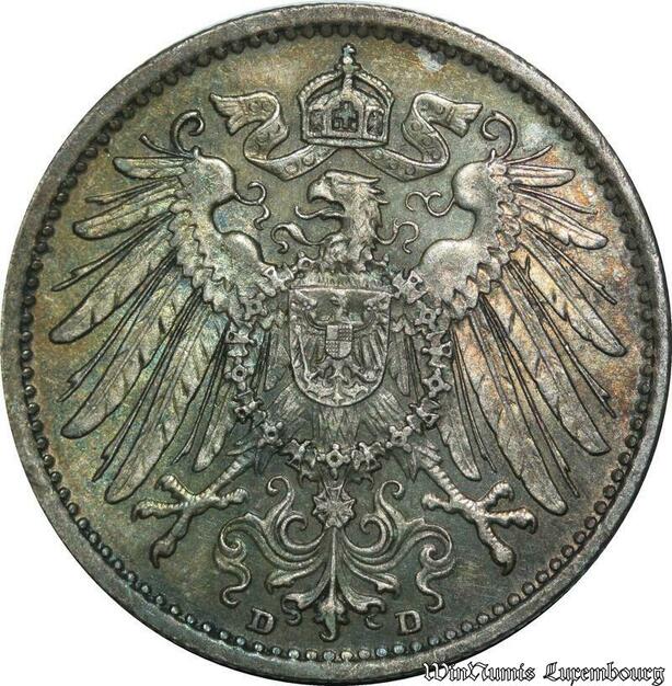 P8147 Germany Empire Mark Wilhelm II 1908 D Silver AU -> Make offer