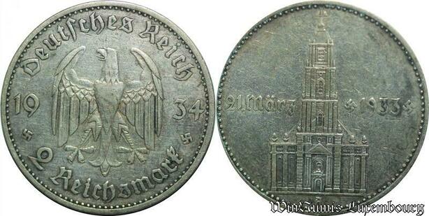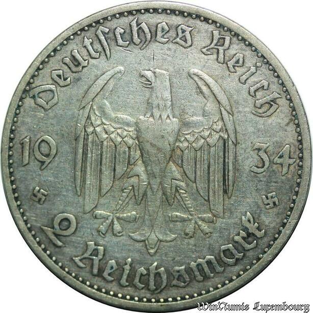 P8156 Germany Third Reich 2 Reichsmark Potsdam 1934 Silver A -> M offer