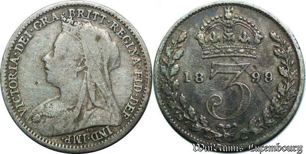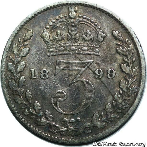 P8160 UK 3 Pence Queen Victoria 1899 Silver -> Make offer