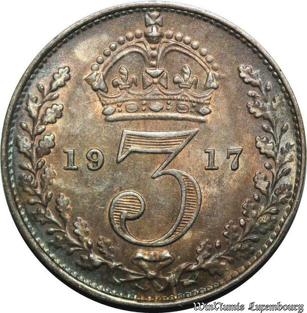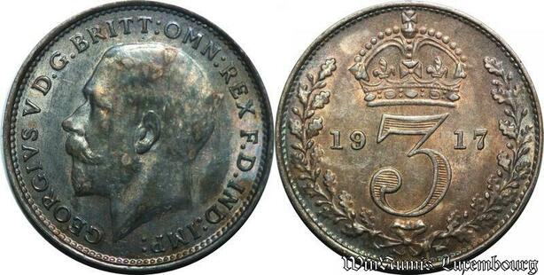 P8163 UK 3 Pence King George V 1917 Silver UNC -> Make offer