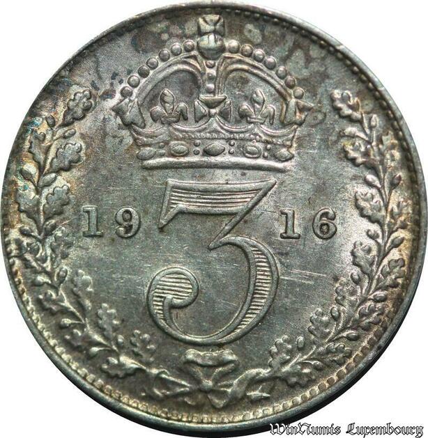 P8166 UK 3 Pence George V 1916 Silver UNC -> Make offer