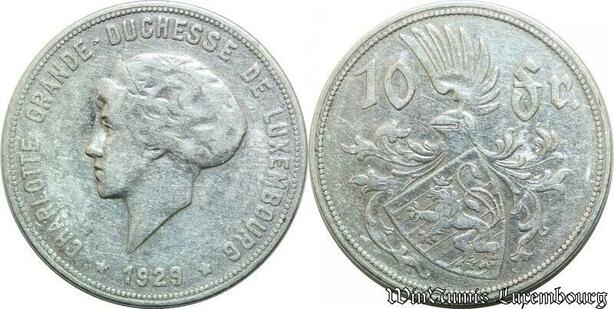P8169 Luxembourg 10 Francs Charlotte Grande Duchesse 1929 Silver -> M offer