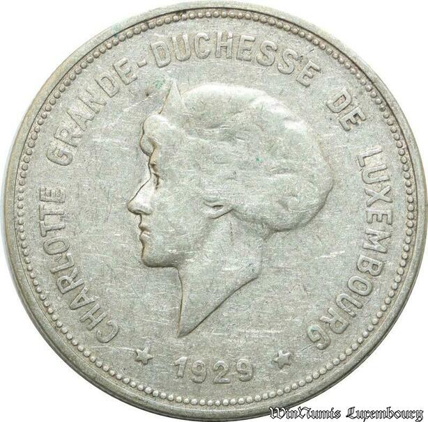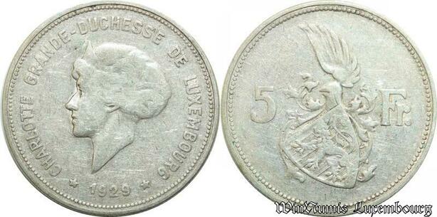 P8177 Luxembourg 5 Francs Charlotte Grande Duchesse 1929 Silver -> M offer