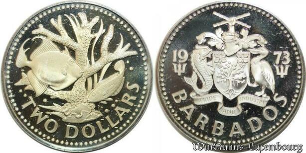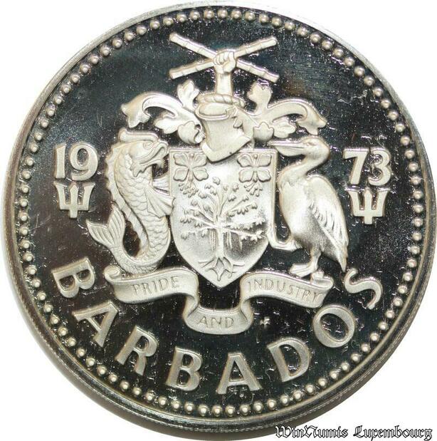 P8198 Barbados 2 Dollars Fountain Elizabeth II 1973 Silver PROOF ->M offer