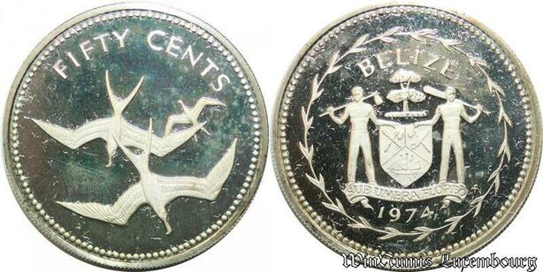 P8205 Belize 50 Cents Frigate Birds Elizabeth II 1974 Silver PROOF ->M offer