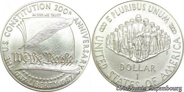 P8212 United States Dollar 200 years US Constitution Liberty 1787 1987 Silver UNC