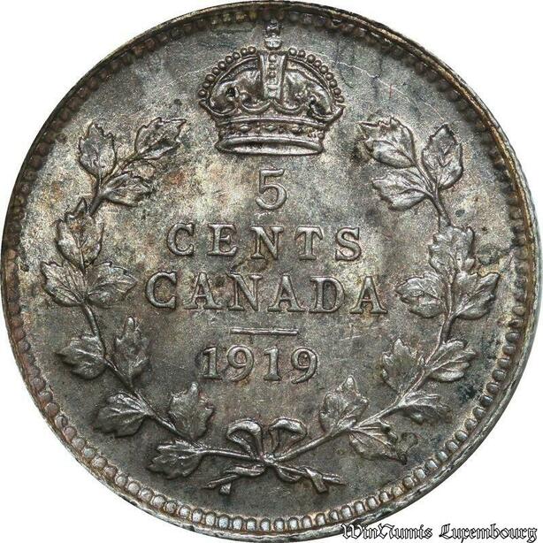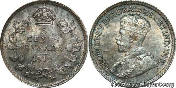 P8226 Rare Canada 5 Cents Georges V 1919 Silver UNC -> M Offer