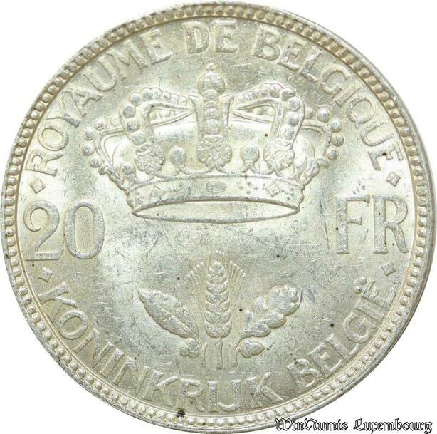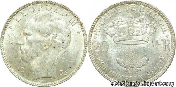 P8251 Belgique 20 Francs Leopold III 1935 Silver AU -> M Offer