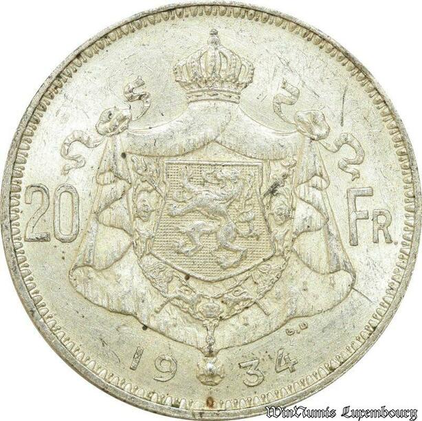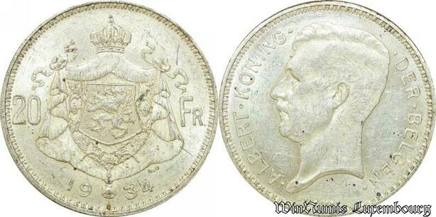 P8260 Belgium 20 Francs Albert I 1934 Silver -> M Offer