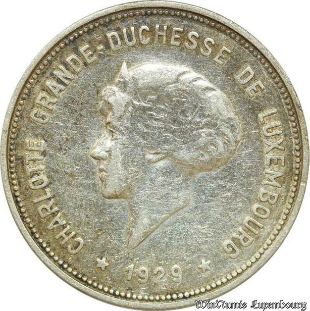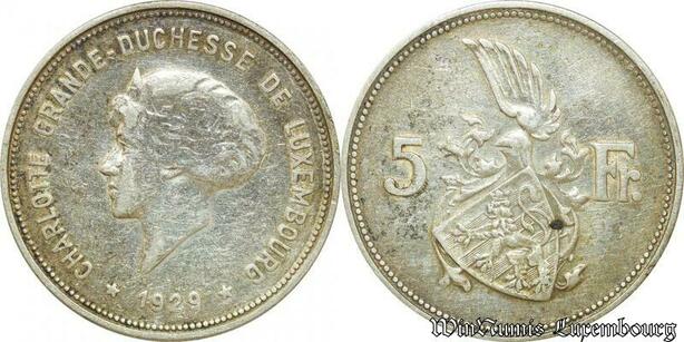 P8277 Luxembourg 5 Francs Charlotte Grande Duchesse 1929 Silver -> M Offer