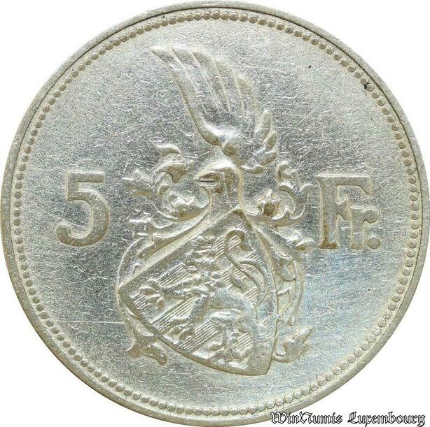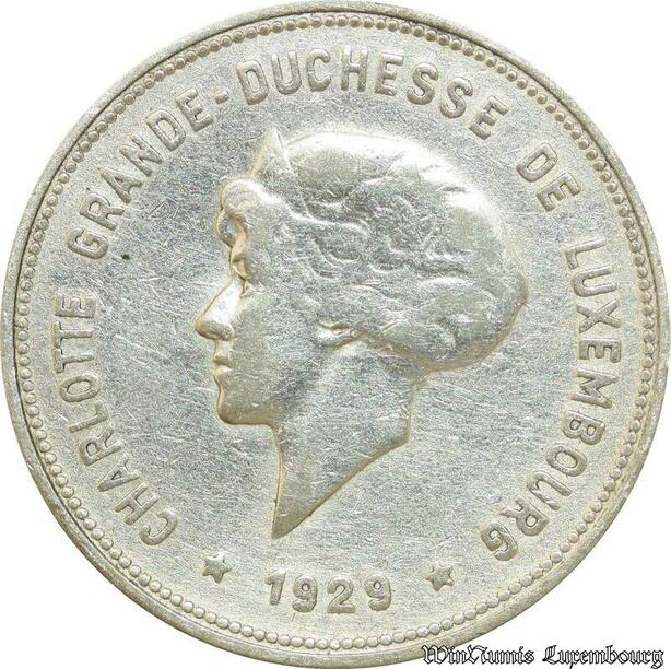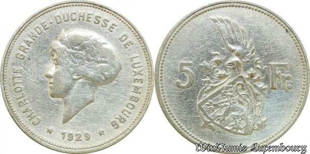 P8280 Luxembourg 5 Francs Charlotte Grande Duchesse 1929 Silver -> M Offer