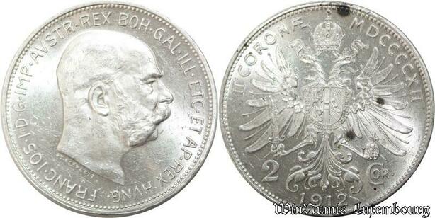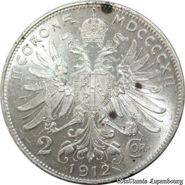 P8289 Austria Hasburg 2 Corona Franz Joseph I 1912 Silver BU UNC -> Make Offer