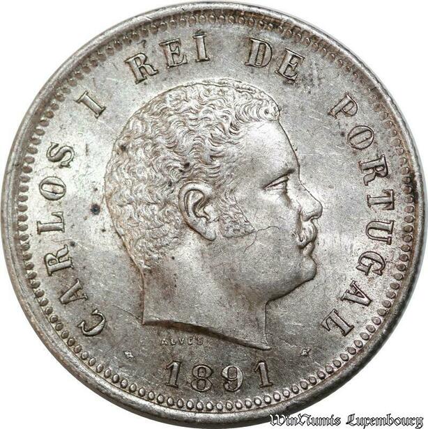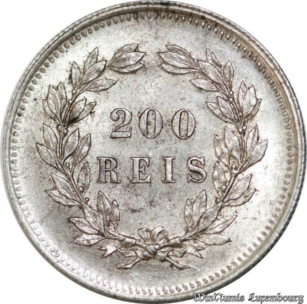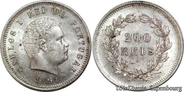 P8297 Portugal 200 Reis Carlos 1891 Silver UNC -> Make Offer