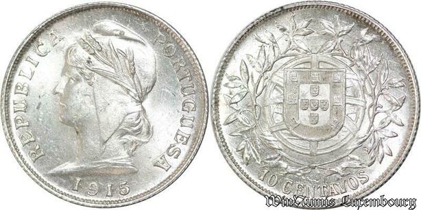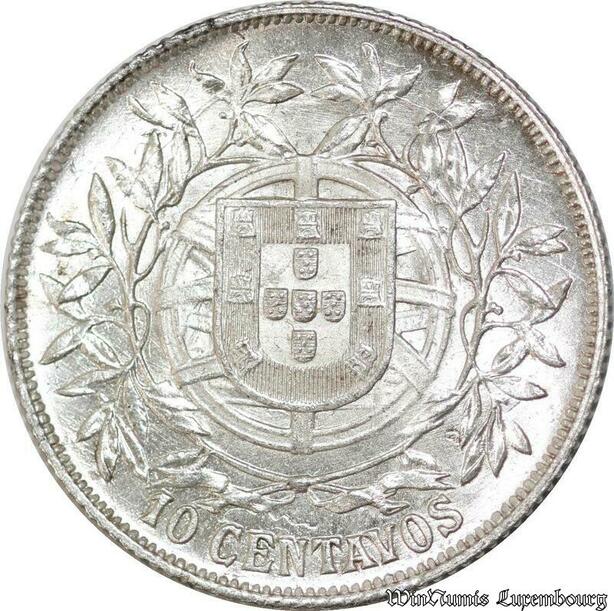 P8316 Portugal 10 Centavos Republica Portuguesa 1915 Silver UNC ->Make offer