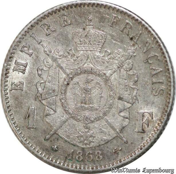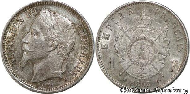 P8317 Rare France 1 Franc Napoléon III 1868 A Silver SPL ->Make offer