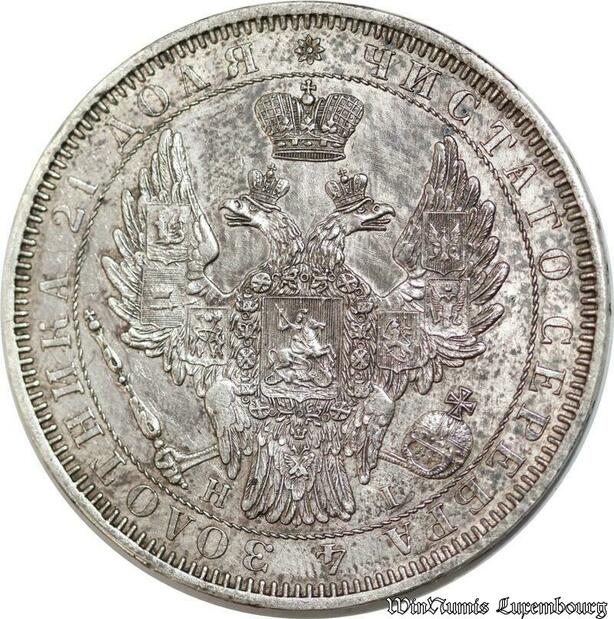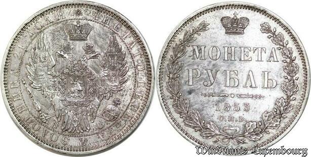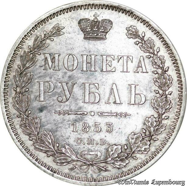 P8322 Rare Russia Rouble Nikolai I 1853 St Petersburg HI Silver AU ->M offer
