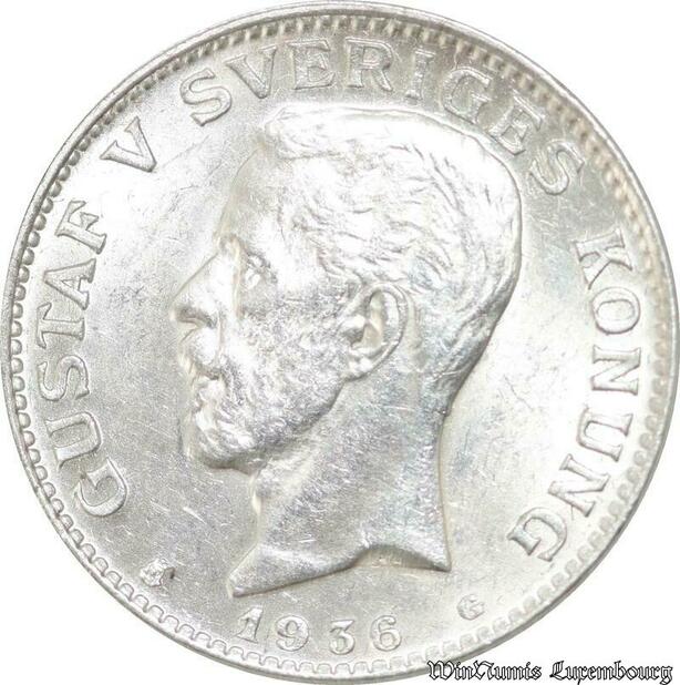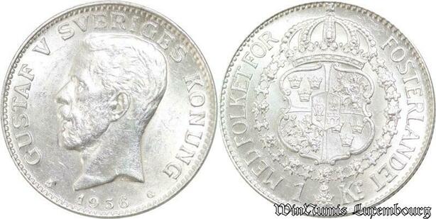 P8323 Sweden 1 Krona Gustaf V 1936 G Silver UNC ->Make offer