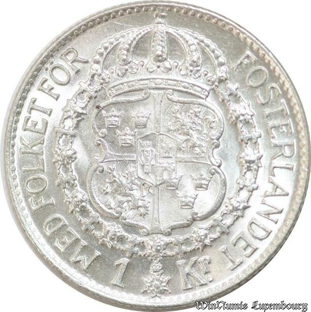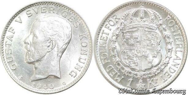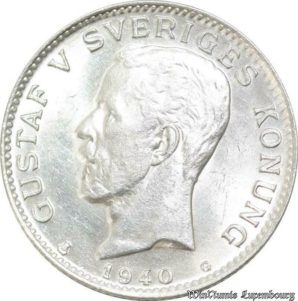 P8324 Sweden 1 Krona Gustaf V 1940 G Silver UNC ->Make offer