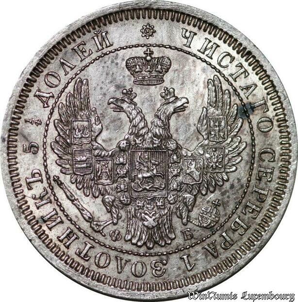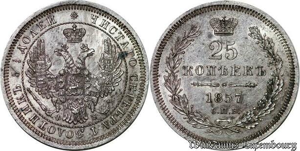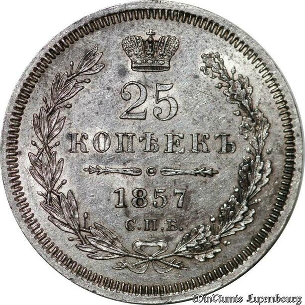 P8329 Very Rare Russia 25 Kopecks Nicholas I 1857 ФБ St. Petersburg Silver AU