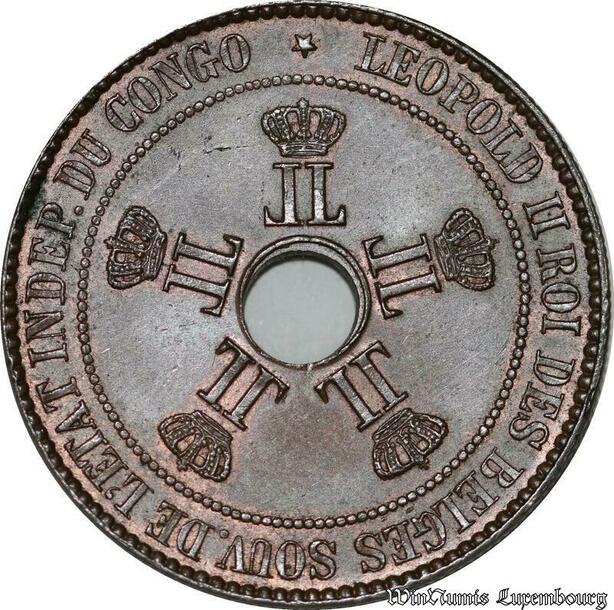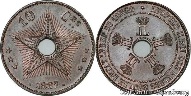P8339 Congo Belge 10 Centimes Leopold II 1887 UNC -> M Offer