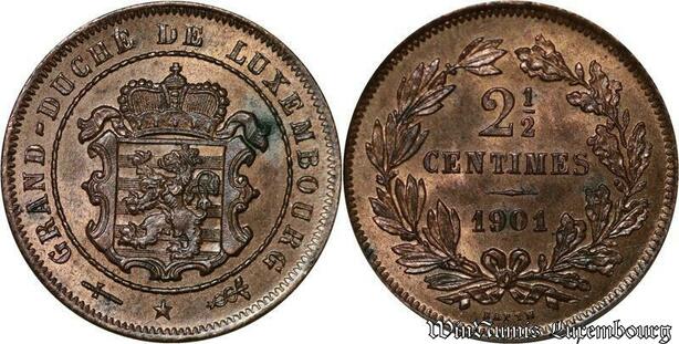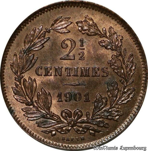 P8341 Luxembourg 2 1/2 Centimes 1901 Error Bapth UNC -> M Offer