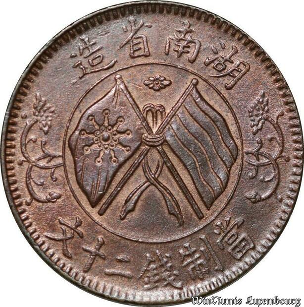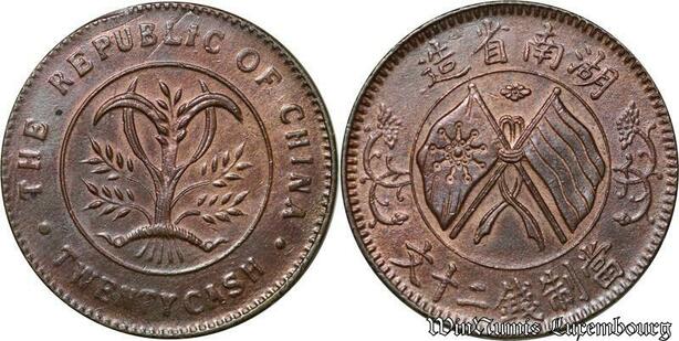 P8343 Rare China Hunan 20 Cash Province 1919 AU -> M Offer