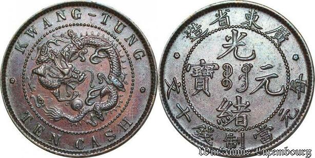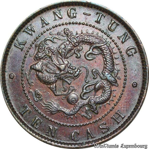 P8346 Rare China Empire Kwang Tung 10 Cash 1900 1906 Y-193 AU ++ -> M Offer