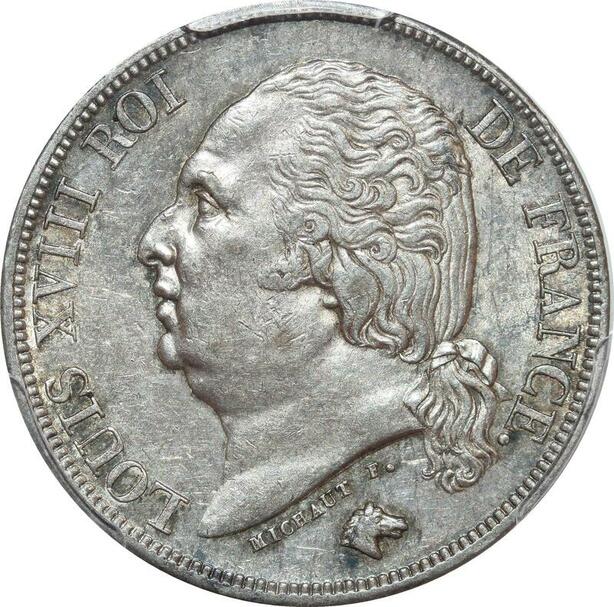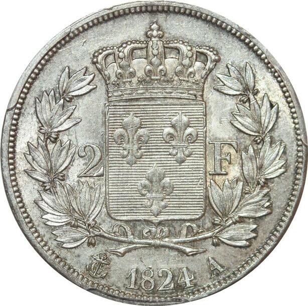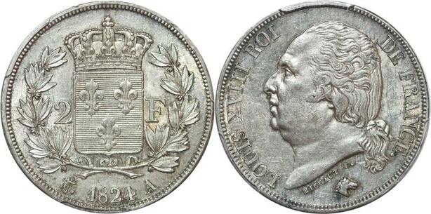 P2867 Rare France 2 Francs Louis XVIII 1824 A Paris PCGS AU55 Argent Silver