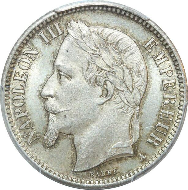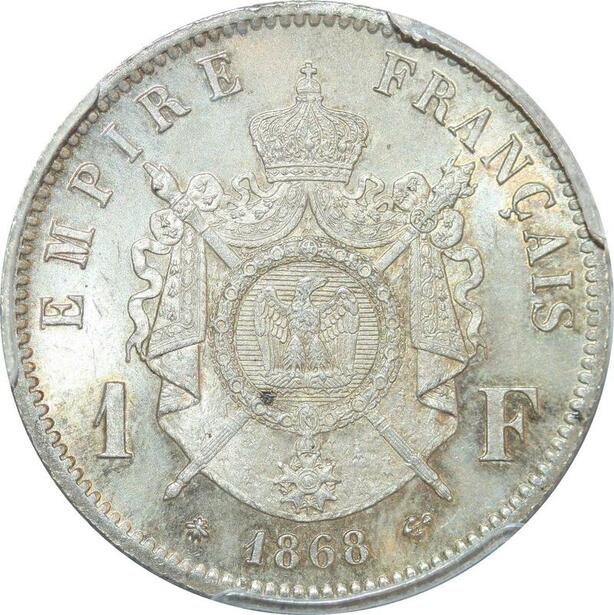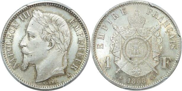 P2870 Rare France 1 Franc Napoléon III 1868 A Paris PCGS MS64+ Argent Silver