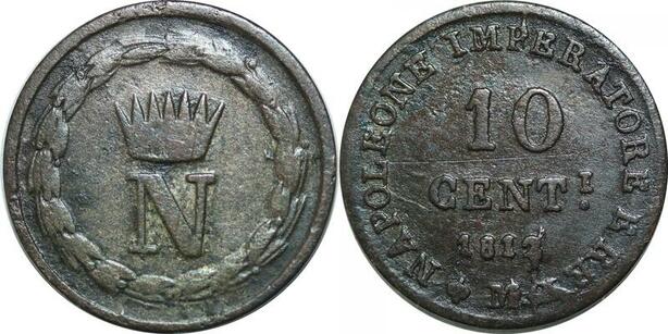 Q0233 Italian States Kingdom 10 Centesimi Napoleon Ier 1812 /3 M Milan -> Offer