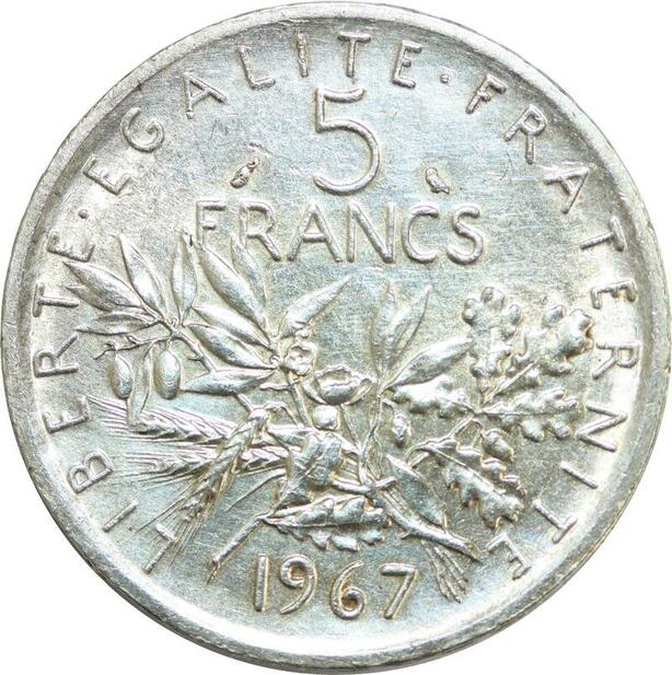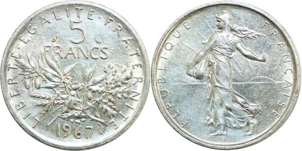 Q0248 France 5 Francs Semeuse 1967 Argent SUP -> Make offer