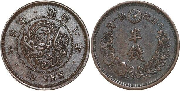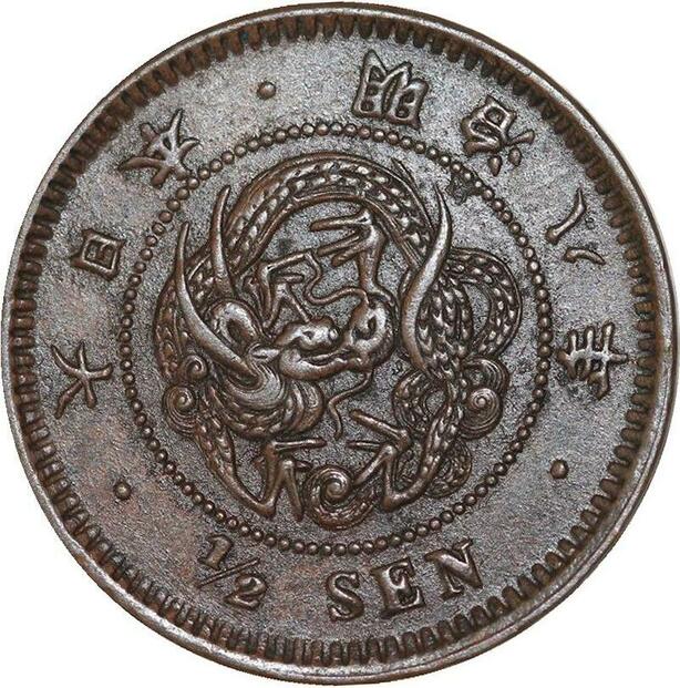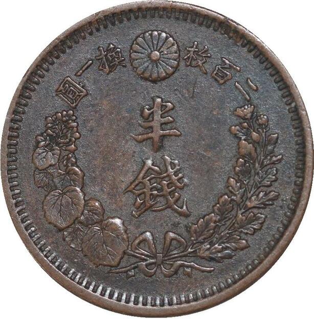 Q0312 Rare Japan 1/2 Sen Mutsuhito Year 8 1875 AU -> Make offer