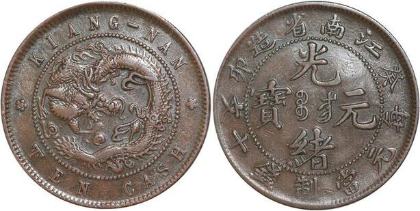 Q0313 Rare China Kiang Nan 10 Cash 1903 Y-135.4 AU -> Make offer