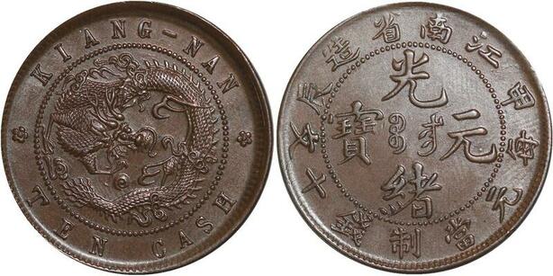 Q0316 Very Rare China Kiang Nan 10 Cash 1904 Y-135.5 UNC !! A GEM -> Offer