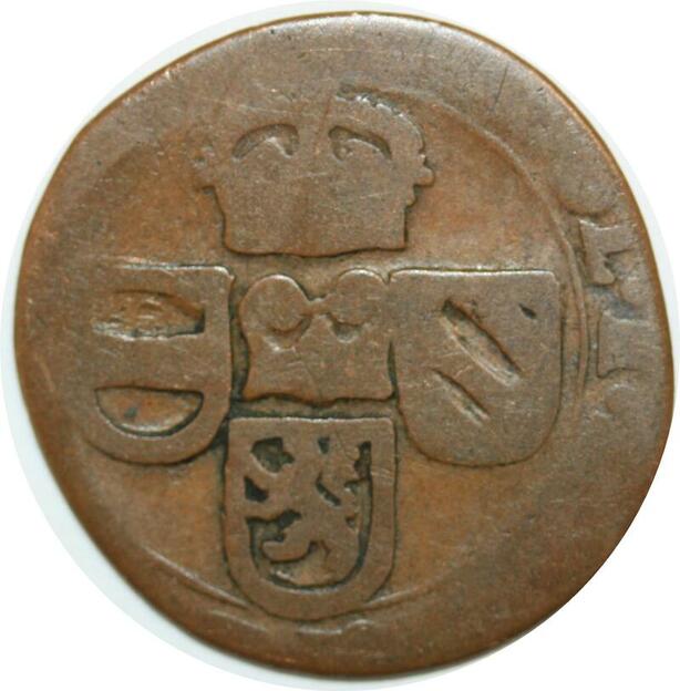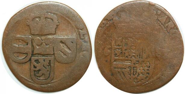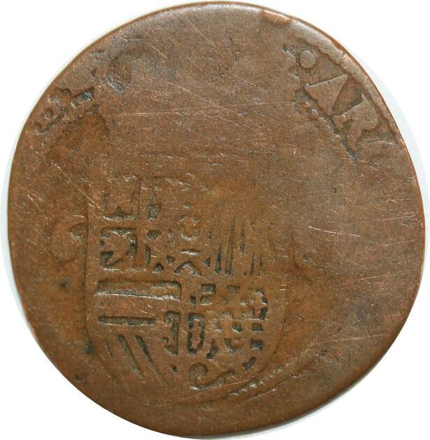 Q0323 Rare Spanish Netherlands Brabant Liard Charles II 1683 Date autour Ecu