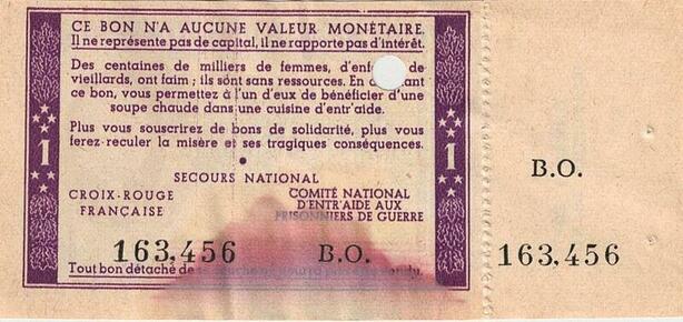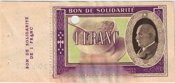 Europe Bon de Solidarité 1 Franc Croix rouge Pétain 1940 -> Make offer