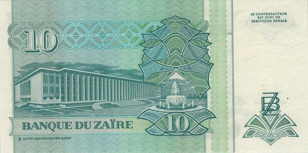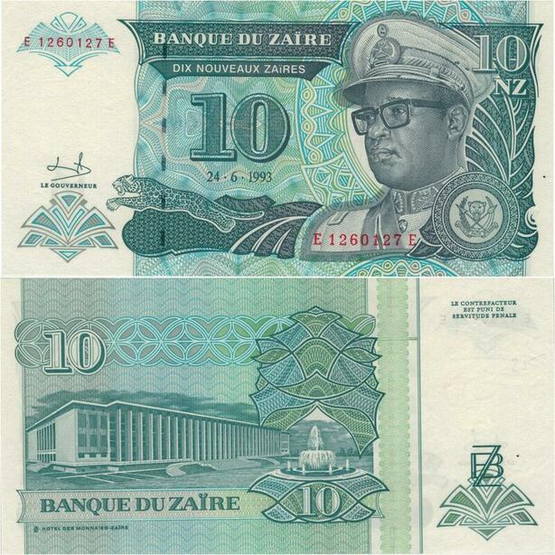 Banknote Zaire Congo 10 Nouveau Zaires Mobutu Seko 1993 UNC-> M Offer